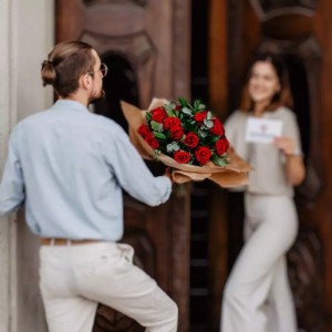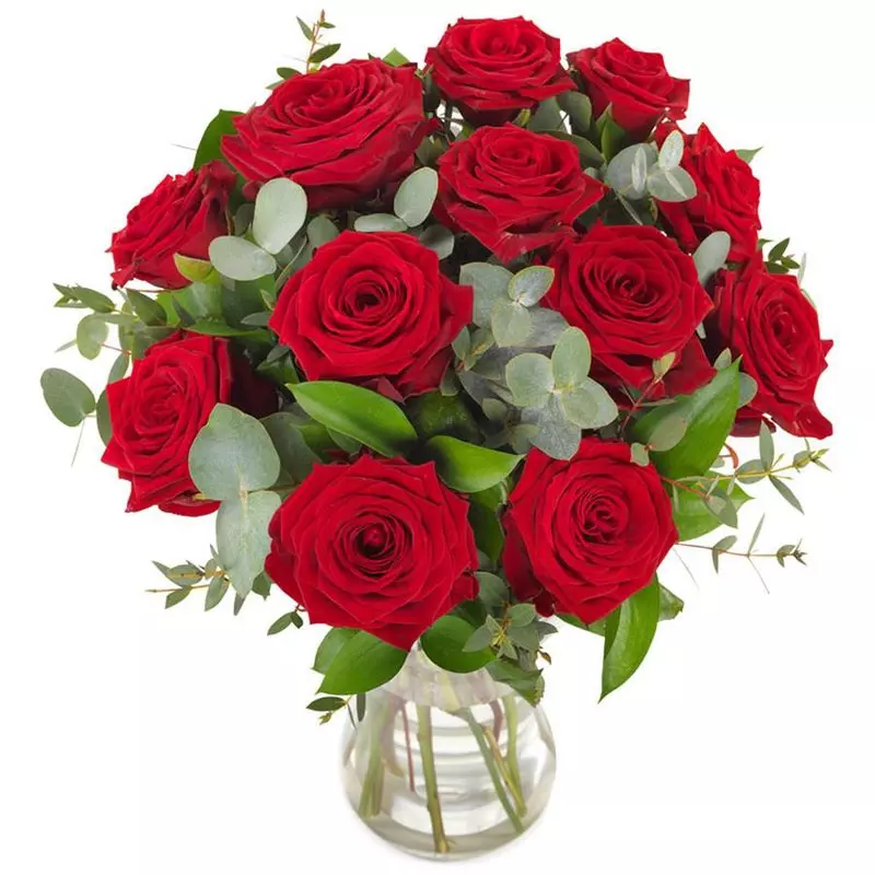 Czerwone róże i gałązki eukaliptusa to połączenie, które nigdy nie wychodzi z mody. Taki bukiet możesz wręczyć każdemu bez względu na wiek i płeć. Aby jeszcze pełniej przekazać życzenia, dołącz do bukietu bilecik z życzeniami. Bukiet będzie wykonany przez lokalną kwiaciarnię Euroflorist. Zdjęcie przedstawia bukiet w wersji dużej. Wazon nie jest wliczony w cenę bukietu.