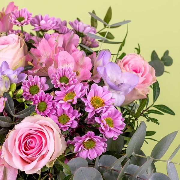 Bukiet idealny na każdą okazję! Subtelny i zmysłowy bukiet, ułożony z róż, alstromerii i drobnych chryzantem. Wraz z nim doręczysz uczucie ciepła i harmonii. Do bukietu możesz też dołączyć bilecik. Cena nie obejmuje wazonu.