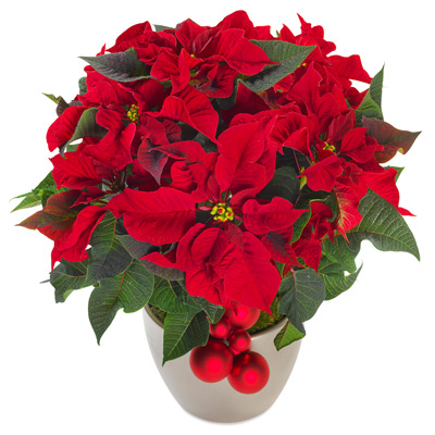 Spraw bliskim radość w nadchodzące Święta - wyślij kwiaty! Poinsecja to idealna świąteczna niespodzianka! Kompozycja ułożona jest w naczyniu i ozdobiona czerwonymi bombkami Podstawowym kolorem jest czerwony. Aranżacja ułożona będzie przez lokalną kwiaciarnię EuroFlorist. Przedstawiona na zdjęciu doniczka jest przykładowa i może różnić się od tej która zostanie dostarczona.